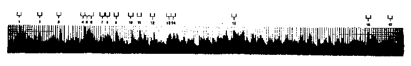 pattern contains some number of impulses ranging from n = 8 to n = 17, also in a