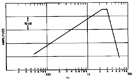 at 6 dB/octave below 2.3 kHz. The signal, in effect, is differentiated and